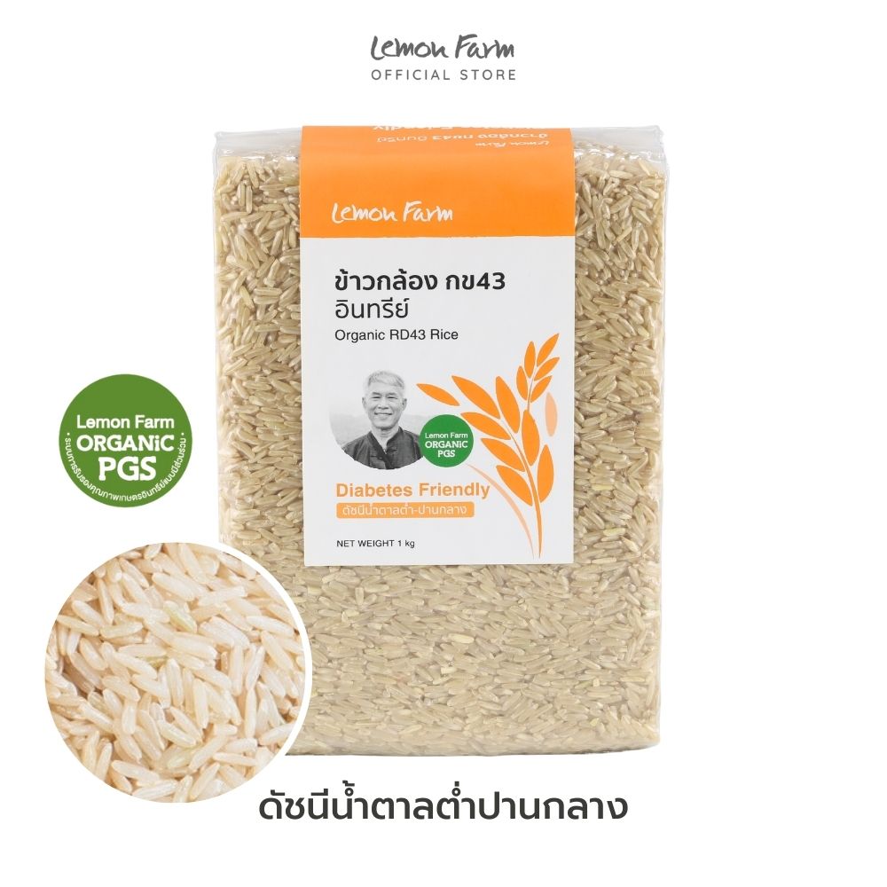 ข้าวกล้อง กข43 เกษตรอินทรีย์ ค่าดัชนีน้ำตาล (GI) อยู่ในระดับปานกลางค่อนข้างต่ำ ปลูกในระบบนาอินทรีย์ กลุ่ม Lemon Farm พีจีเอส ทุ่งทองยั่งยืน จ.สุพรรณบุรี ซึ่งมีพื้นที่เหมาะสมกับสายพันธุ์