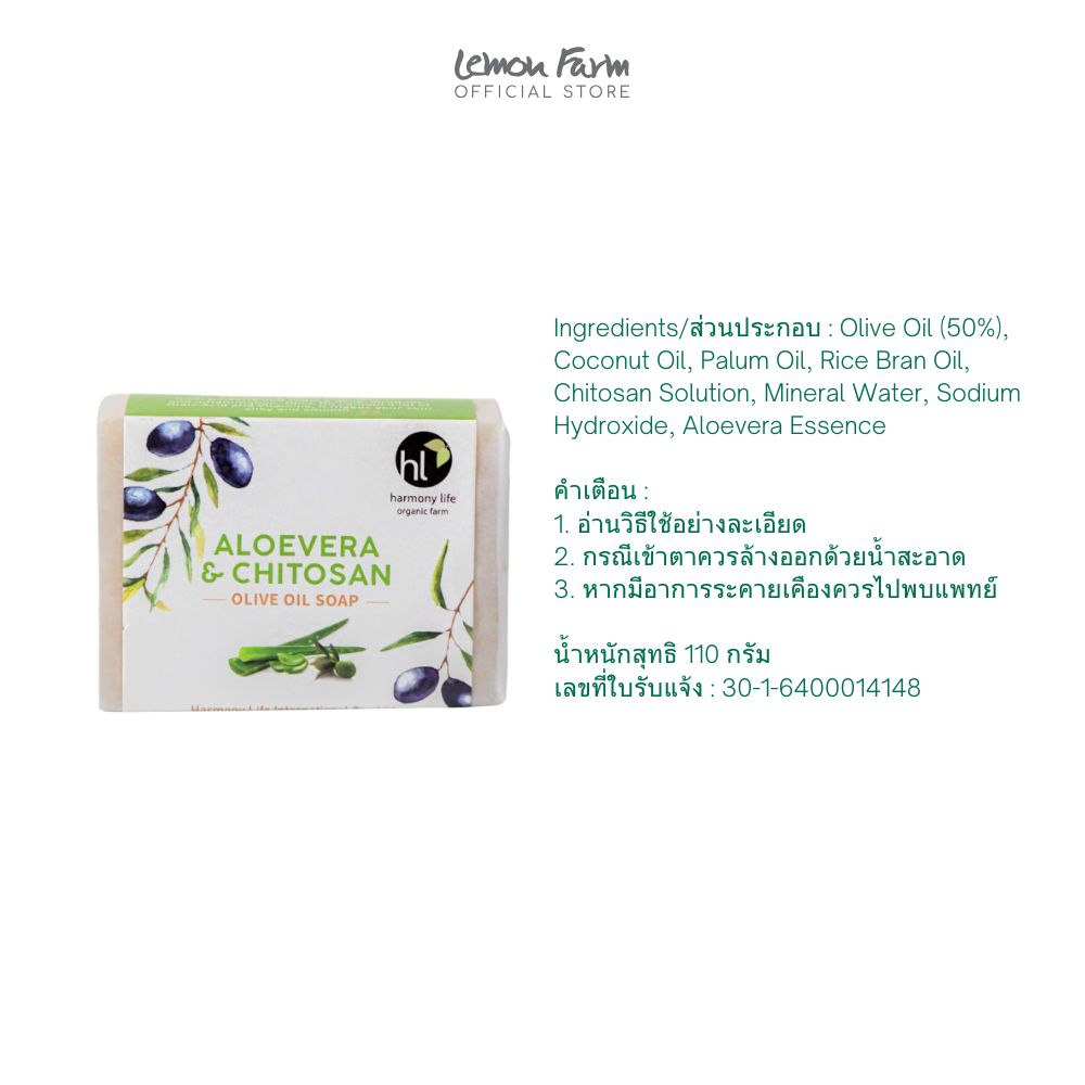 สบู่โอลีฟออยล์ว่านหางจระเข้และไคโตซาน 110 g