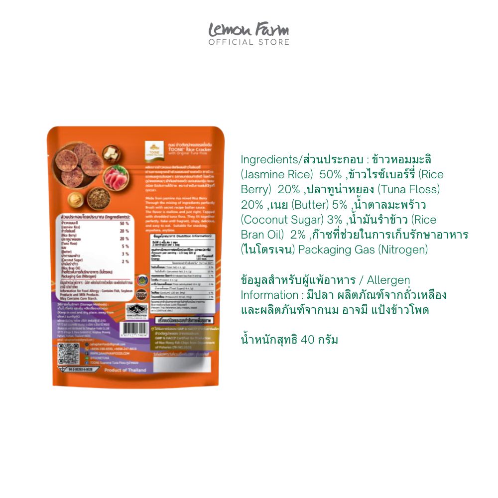 ข้าวตังทูน่าหยองรสดั้งเดิม 40 g