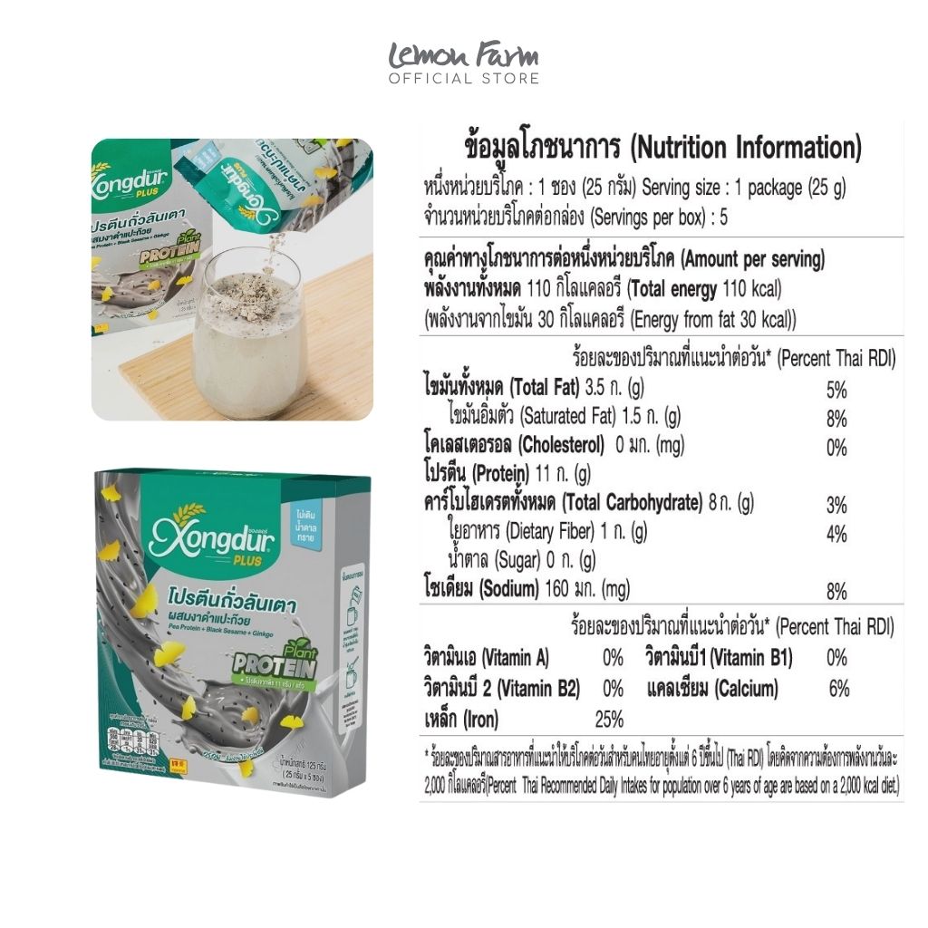 เครื่องดื่มโปรตีนถั่วลันเตาผสมงาดำแปะก๊วยสำเร็จรูปชนิดผง 25g x 5 ซอง